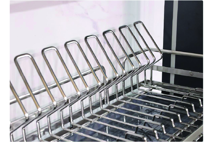 Chất liệu rổ chén bát được làm bằng inox 304 bền bỉ, chống ăn mòn, chống gỉ sét phù hợp với các sản phẩm gia dụng cao cấp sử dụng lâu dài.